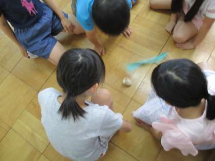 国語科の「こまを楽しむ」で,日本の様々なこまについて勉強し,実際にいくつか回してみました。回すのが難しいこまもありましたが,コツを見つけて上手に回していました。