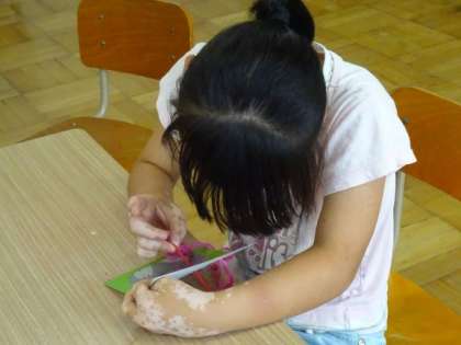 針と毛糸を使って,穴に糸を通しました。てんとう虫やうさぎの形に穴を通してみたり,実際に布を使ってぬったりしました。穴に針を通すのが難しそうでしたが,頑張って取り組んでいました。