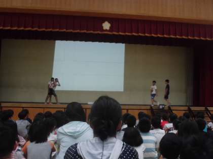全校合唱をしたり,各委員会からのお知らせを聞いたりしました。