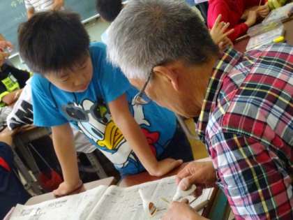 深草地域に生えている竹を使って,竹とんぼを作りました。地域の方に来ていただき,竹が大きくなっていく様子や竹とんぼの作り方等を説明して頂きました。自分たちで竹の大きさが左右対称になるように,やすりで削りました。その後は体育館で,自分で作った竹を飛ばしました。遠くまで飛ぶように何回も練習して遊んでいました。
