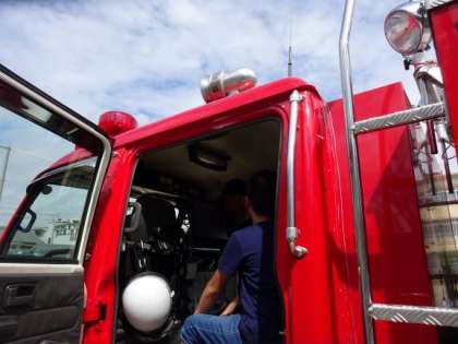 火事が起こった時を想定して避難訓練を行いました。「おはしもて」の約束を守って避難することの大切さを学習しました。その後伏見消防署の方に消防車の中に入らせてもらい,道具の使い方について教えてもらいました。