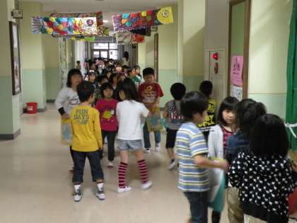 さすが2年生です。1年生のお友だちにやさしくていねいに一つ一つの施設を案内してくれました。