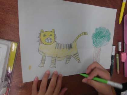 図画工作科でお話を聞いて,想像して絵に表す学習をしています。絵を描く練習をしました。