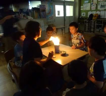 9月生まれの人のお誕生日会をしました。稲荷小学校のお友達も一緒に参加してくれました。みんなで顔を見合わせて自己紹介をしたり,ろうそくけしをしたりしました。お誕生日の歌を歌って,みんなでお祝いしました。