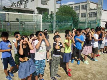 遮光板を使って太陽を見たり,影について学習しました。