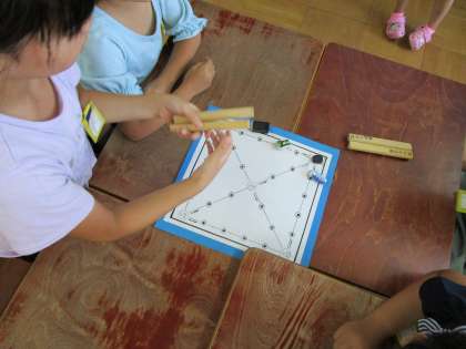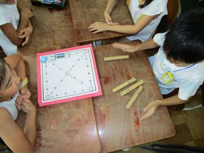 お忙しい中,子どもたちの参観と懇談会に来ていただき,ありがとうございました。2年生は「おとなりの国を知ろう」という学習で,韓国や朝鮮の遊び「ユンノリ」をして遊びました。日本の双六に似ていて,サイコロの代わりに「ユッ」という棒を使い,出た点数分だけ進みます。初めての遊びでしたが,ルールもすぐに覚えて,とても楽しんでいました。
