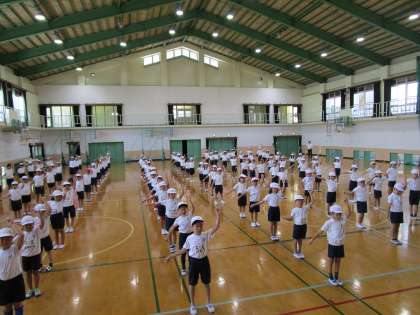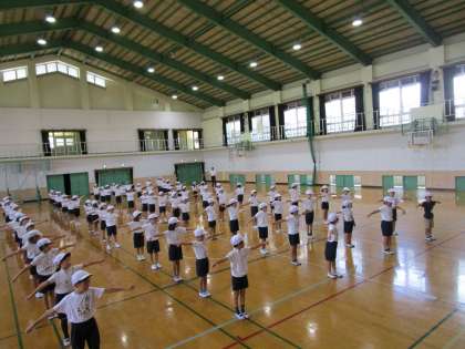 2年生の学年演技の練習が始まりました。まず最初は,一列に真っすぐに並ぶ練習をしました。緊張感をもって,取り組んでいます。動きの練習は,各教室でも楽しんでしています。