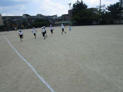 50m走の練習をしました。自分のコースを真っすぐに,ゴールまで走りきる練習をしました。自分の力を出しきれるように頑張ってほしいです。