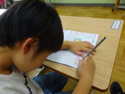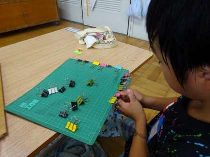 それぞれ自分の課題に合わせて,学習しています。指の力を使ってクリップを付けたり外したりしている人もいれば,一文字ずつ丁寧に漢字を練習している人もいます。