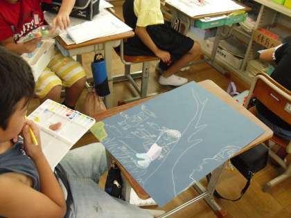 「エマおばあちゃん 山を行く!」の絵本を読んで,お話の絵を描いています。色画用紙を使う子や,線描きには「コンテ」「鉛筆」「スケッチペン」を使う子など,それぞれに工夫が見られます。仕上がりが楽しみですね。