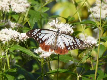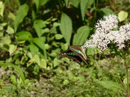 校門横のフジバカマの花に,たくさんの蝶が集まっています。アサギマダラやアオスジアゲハなど,美しい蝶が集まっています。
