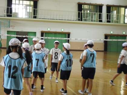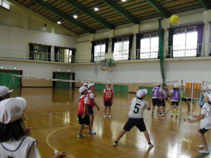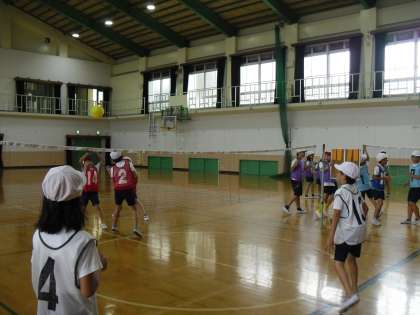 今週から始まった「ソフトバレーボール」皆,とても楽しいようで,準備も早く,練習時間をたくさんとることができています。試合はチームで作戦を立てながら4回で返球する工夫をしています。