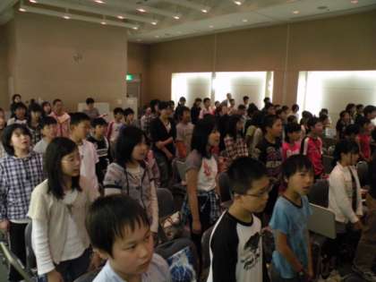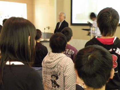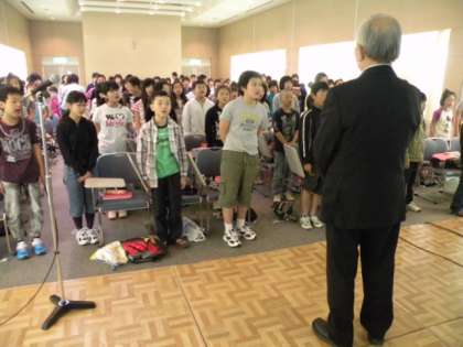 寺本さんから原爆の恐ろしさ、命の尊さ、平和の大切さを教えていただきました。お礼に「折り鶴」の歌を合唱し感謝の気持ちを表しました。