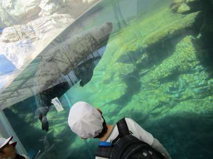 イルカショーが終わったあとは,水族館の中を観ました。アザラシが突然に現れて,ビックリしていました。
