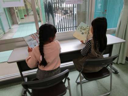 明日の交流で読み聞かせをするために,選んだ本を読む練習をしています。上手に読めるか,緊張しています。