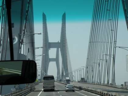 午前10時に倉敷美観地区を出発し、途中、瀬戸大橋を通って香川県に向かいました。