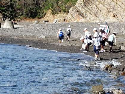 波はそれほどでもなく、波打ち際で子ども達がはしゃいでいます。