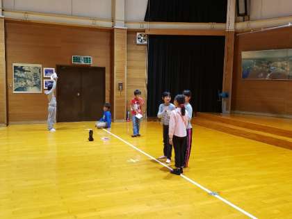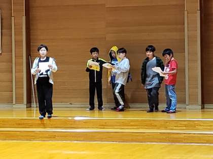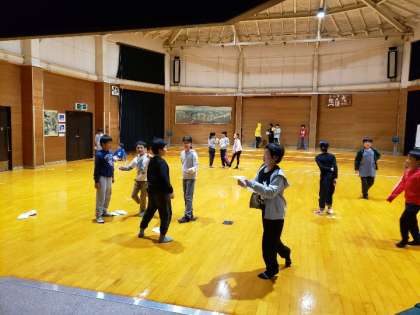 夜のキャンプファイヤーに向けて、レクリエーション係が練習しました。