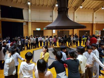 プレーホールに全員入場して、キャンプファイヤーの開幕です。