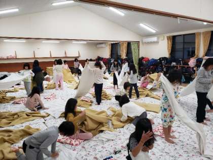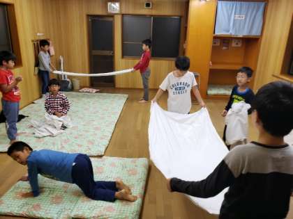 3日目の朝なので起きるのがしんどいかなと思いましたが、寝具の片付けから協力して頑張っています。