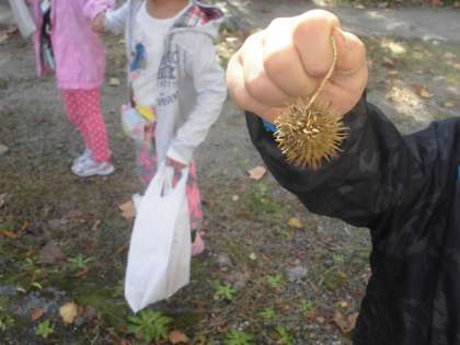 たくさんのどんぐりや葉っぱが落ちていました。
