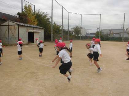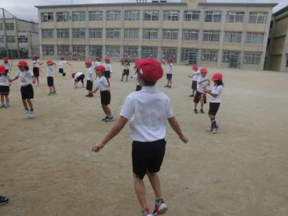 体育科「なわとび遊び」の学習をしています。まずは,縄をくくるところからです。