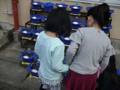 チューリップの球根が気になるようで,早速お世話をしていました。