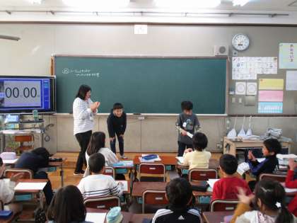 外国語の学習では,英語で書いたカードをプレゼントしています。みんな一生懸命作っていました。