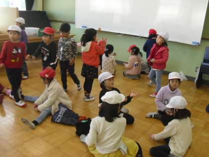 昔遊びの練習をしています。冬休みの間に上達した子がほとんどでした!