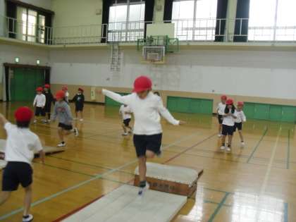 体育科「とびばこ遊び」の学習です。今日はふみこしに挑戦しました。