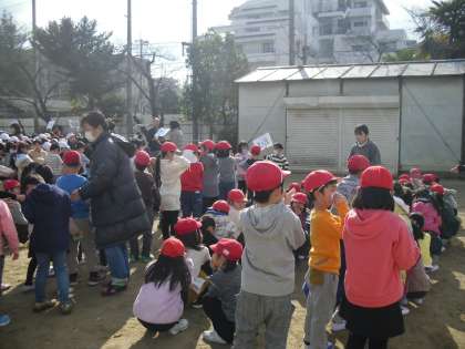 避難訓練をしました。今日はいつ訓練があるかは予告せず,放送があったらよく聞いて行動しました。