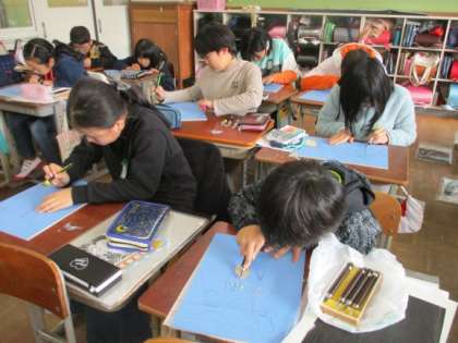 図工の版画の面彫りがとても丁寧で上手です。彫刻刀の使い方にも気をつけていきます。