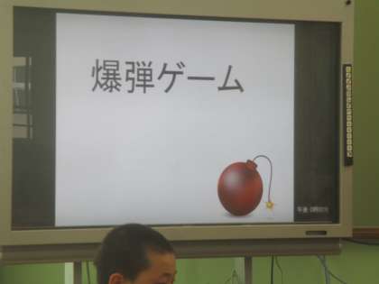「爆弾ゲーム」をしました。グループごとにゲームをしましたが,どのグループも大盛り上がりでした。