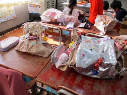 子どもたちは,自分の作品に愛着を持って,友達に紹介していました。