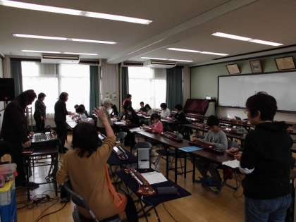 5月から毎月1回大正琴教室を実施しています。大正琴教室では,3月15日(日)の文化パルク城陽での「大正琴の祭典 in 城陽」出演に向けて,今日もがんばって練習を行いました。