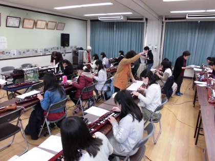 次は10時30分からのAグループの練習が始まりました。3月15日(日)の「大正琴の祭典 in 城陽」への出場まで日が近づいてきましたので,嶋田先生をはじめ指導者のみなさんにいつも以上に力が入ります。