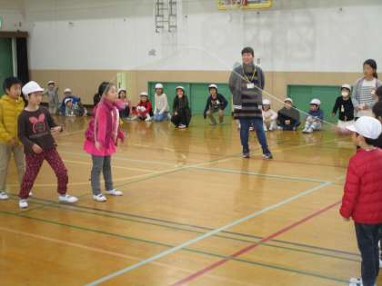 今日は,大なわ大会でした。それそれのクラスの目標にむかって,がんばって練習してきました。結果は,1位が4組,2位が1組,3位が2組,4位が3組でした。この日までクラスで頑張って練習したり,お互いを応援したりすることも頑張りました!