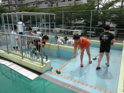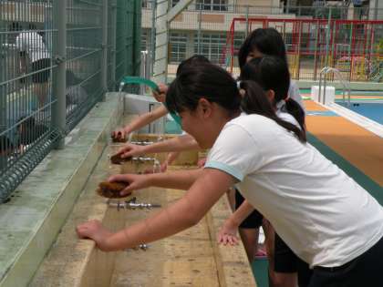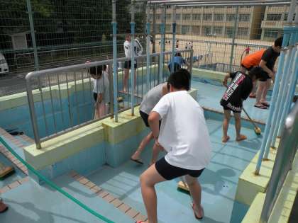 13日(月)から始まる水泳学習に向けて,1年ぶりに使用するプールを6年生の人たちが掃除してくれました。