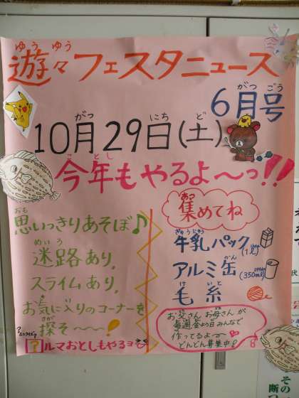 子どもたちが楽しみにしている“遊々フェスタ”が今年も開催されます。