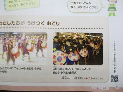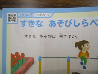 さんすうや音がくのきょうかしょのいろいろなページにQRコードがあります。