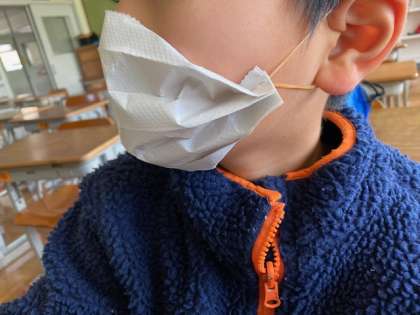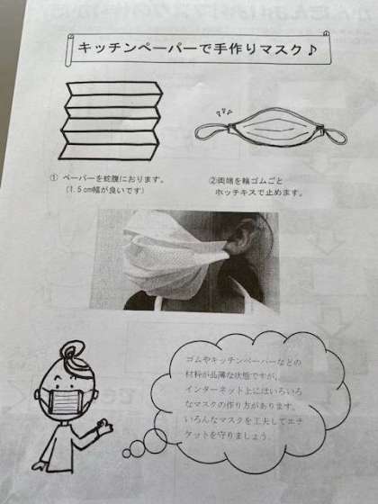 学校からお知らせしたプリントにのっていたマスクを作ってみました。