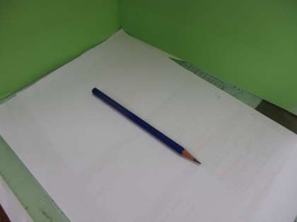 (1)えんぴつを おきます。