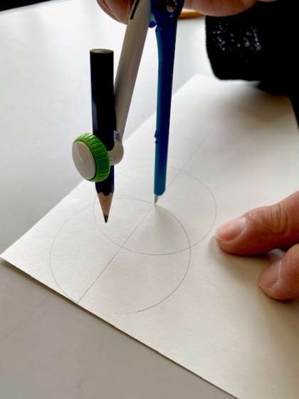 3年生の時に習ったコンパスを使うと,きれいなもようがかけるんです。