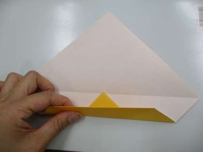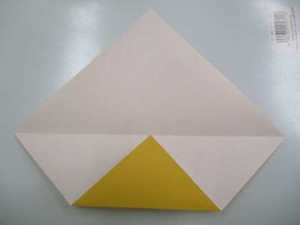 2.ひらいたら,とがっているところがまんなかのせんにつくようにおります。