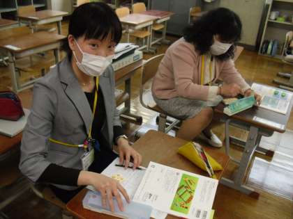 3年生の先生で,算数のじゅぎょうのじゅんびをしました。