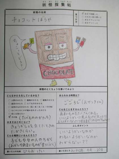 みんなも,おうちでようかいをみつけたら,先生みたいにかいてのこしておいてください。