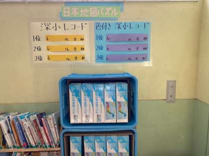 4年生の廊下(ろうか)には,10個の日本地図パズルがあります。