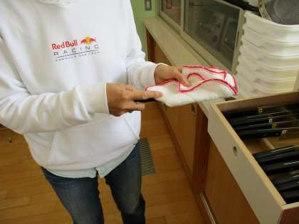 運ぶときは担当の人がふきんで包み,責任をもって運びましょう。