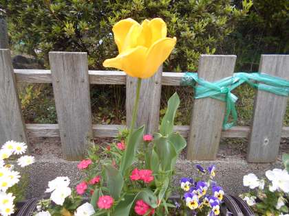 くつばこをでると,こんなおはなが さいていたよ。みたことが あるかな?