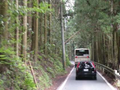 午前10時35分、鞍馬寺の横を通過した後に山道に入りました。途中、工事箇所がいくつもあったので、到着は11時過ぎになる予定です。